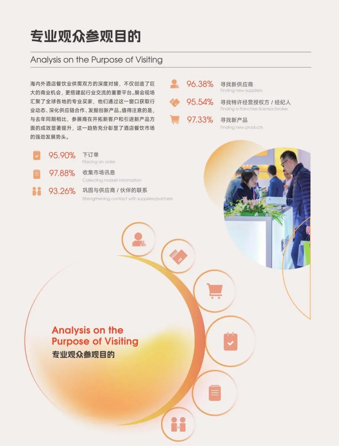 展会立足高质量的庞大买家数据库,汇聚全球买家资源,面对面洽谈; 10万专业采购商资源;行业风向标:展会集聚行业各大品牌,产品动向,营销模式…快速获取; 品牌快速传播:新媒体:公众号、抖音、微博;餐饮研究社直播间\权威大众/行业垂直媒体推广